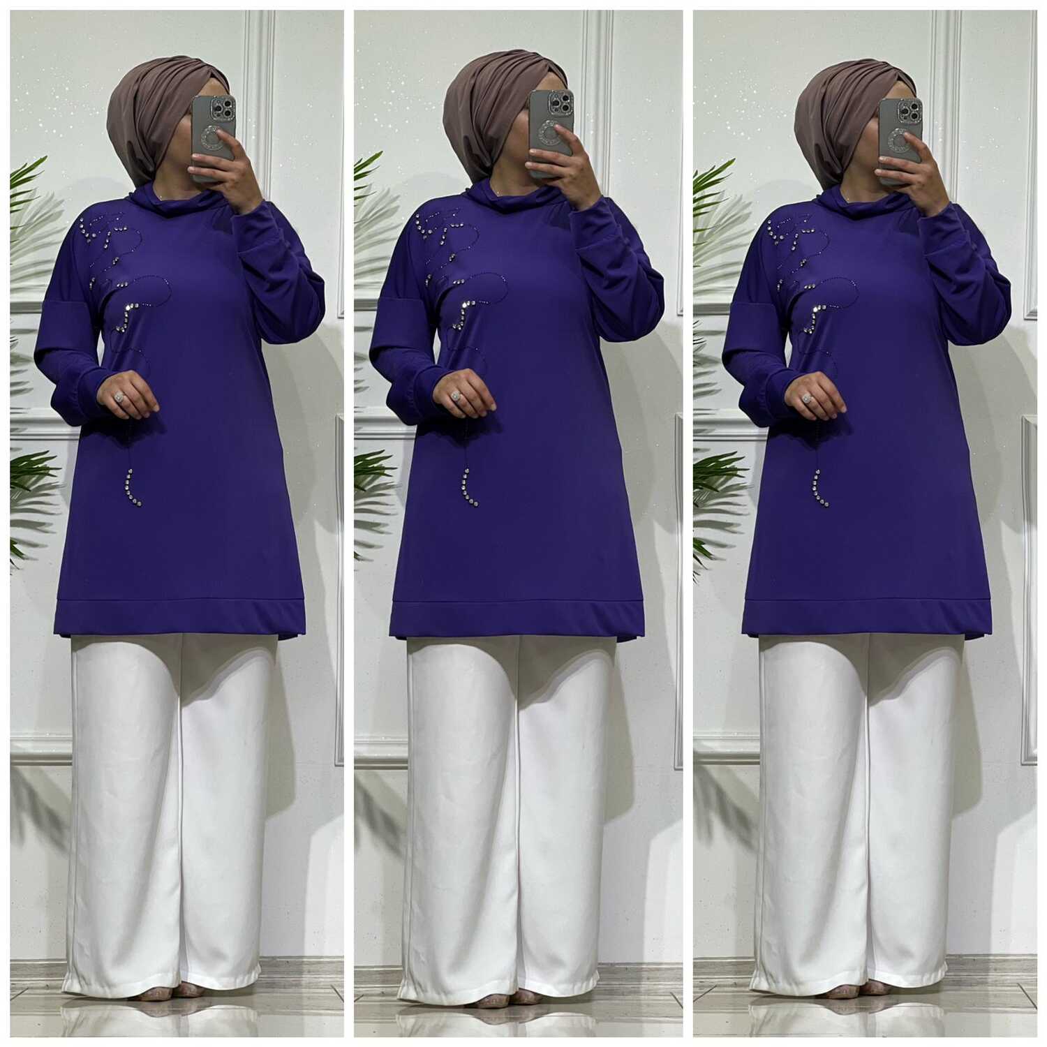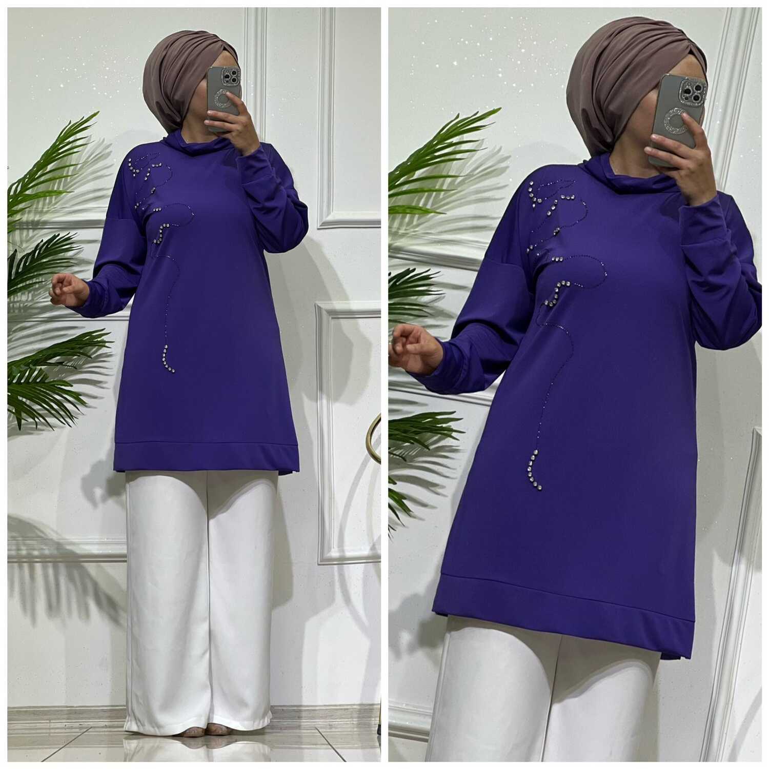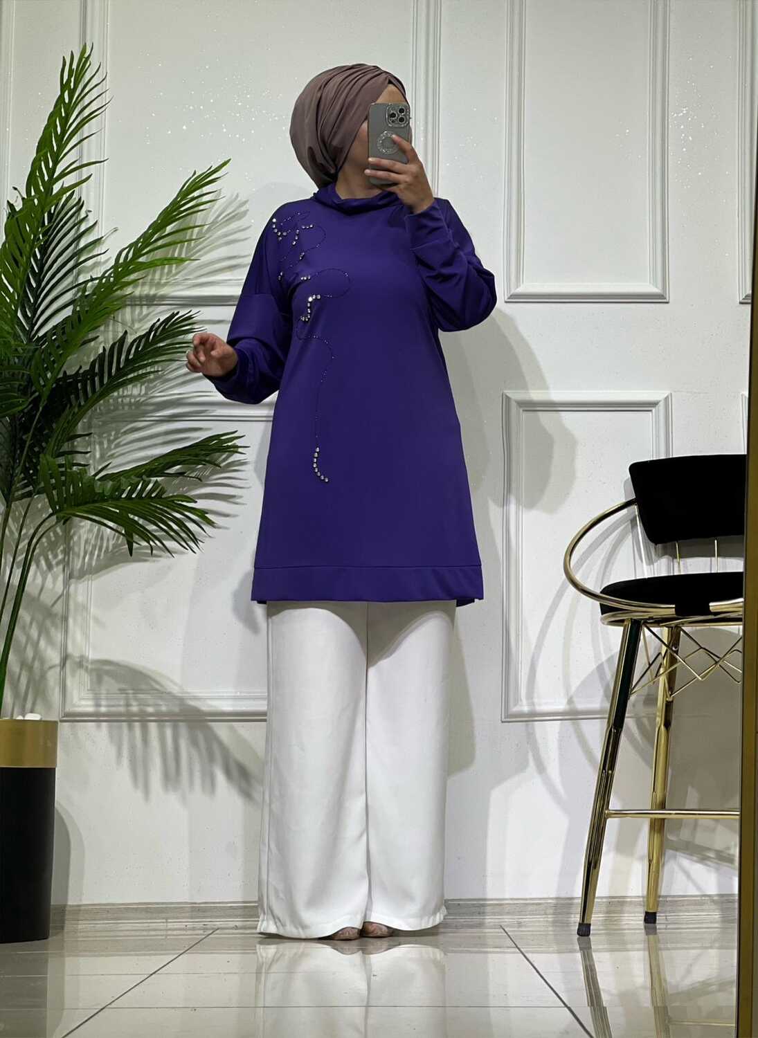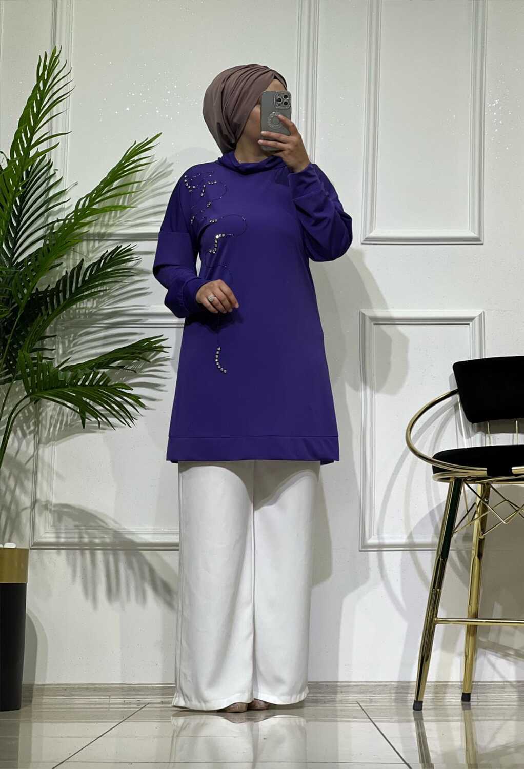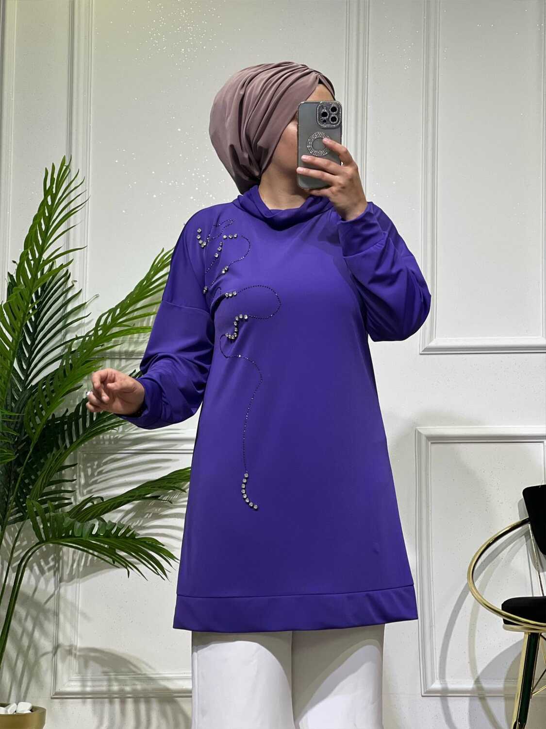1375 K 30 MOR DEGAJE YAKA BEYOGLU TAŞLI TUNİK