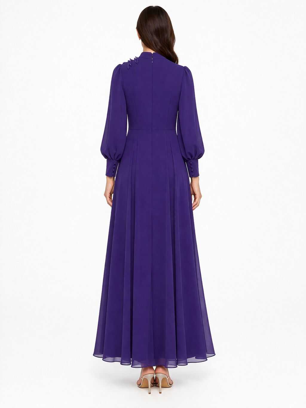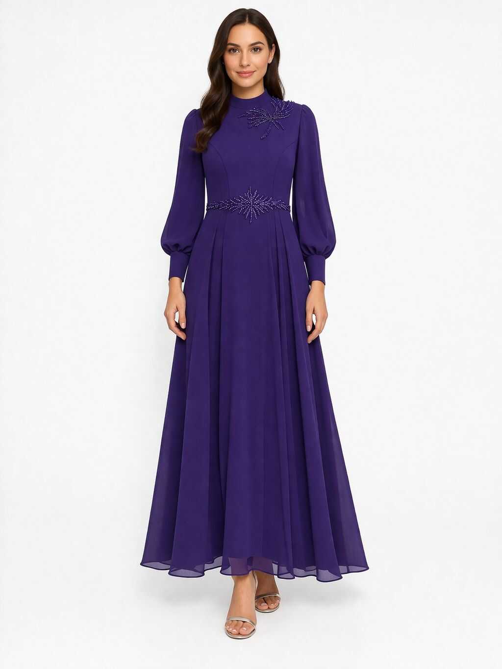 4121 K 200 MOR BELİ TAŞLI ŞİFON ELBİSE