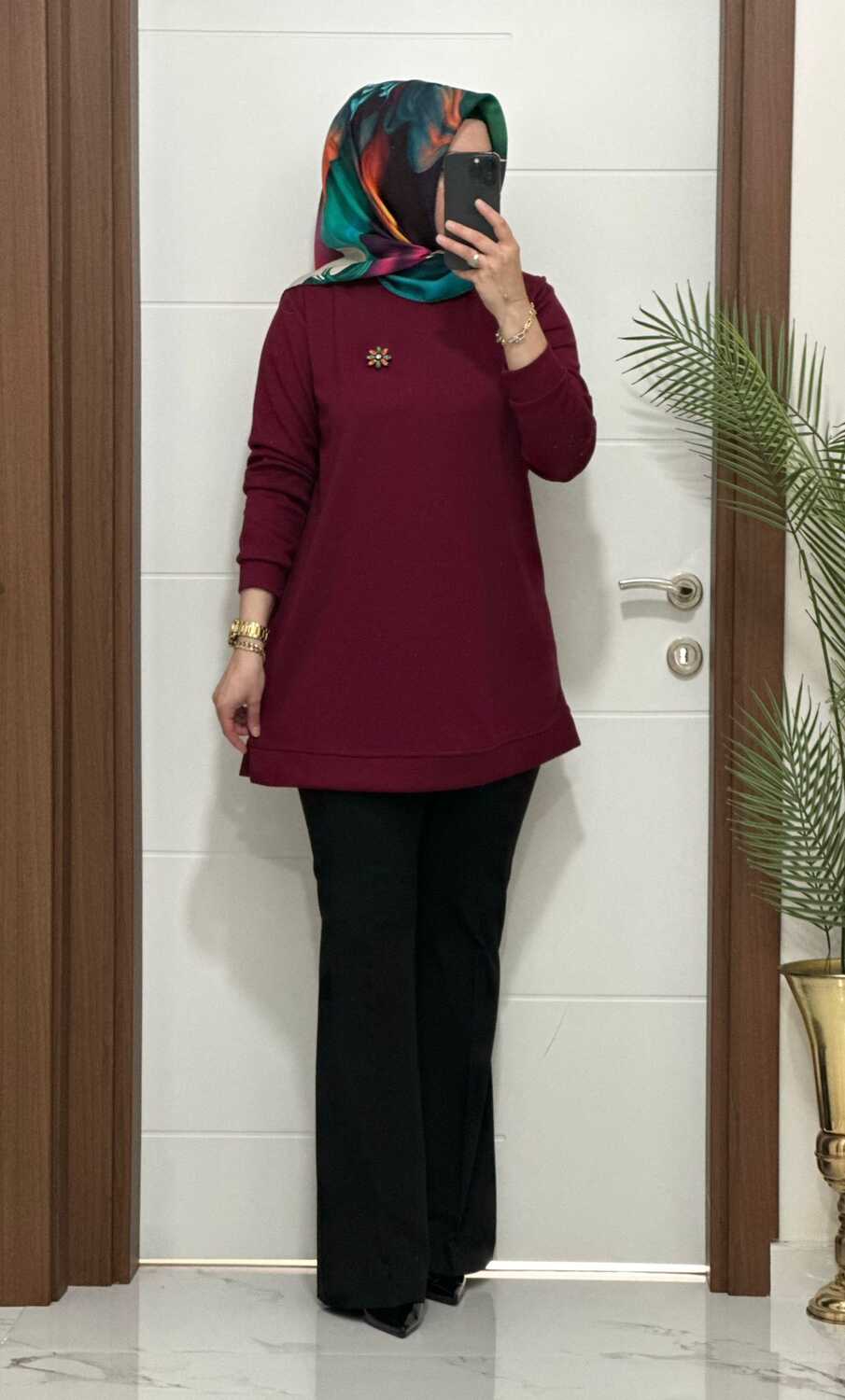 1550 K 656 BORDO BROŞ HEDİYELİ BÜYÜK BEDEN TUNİK