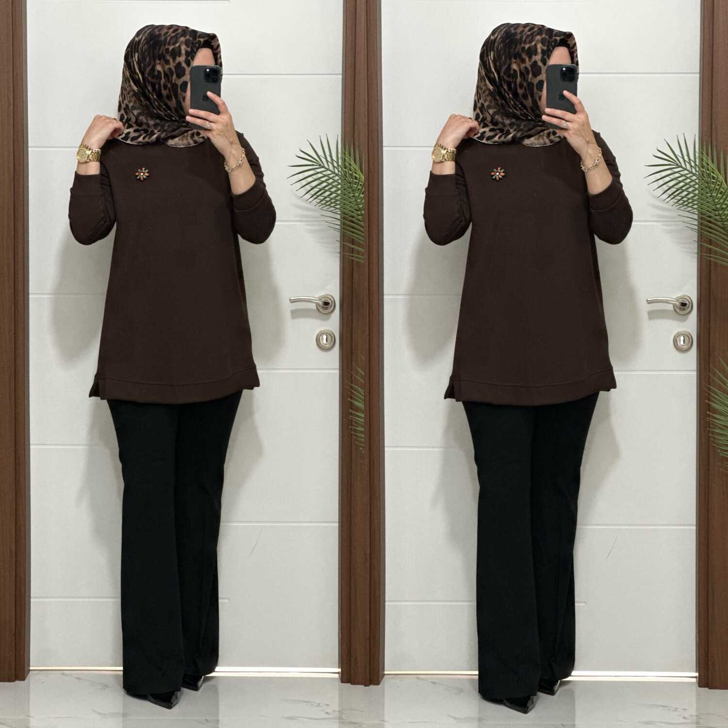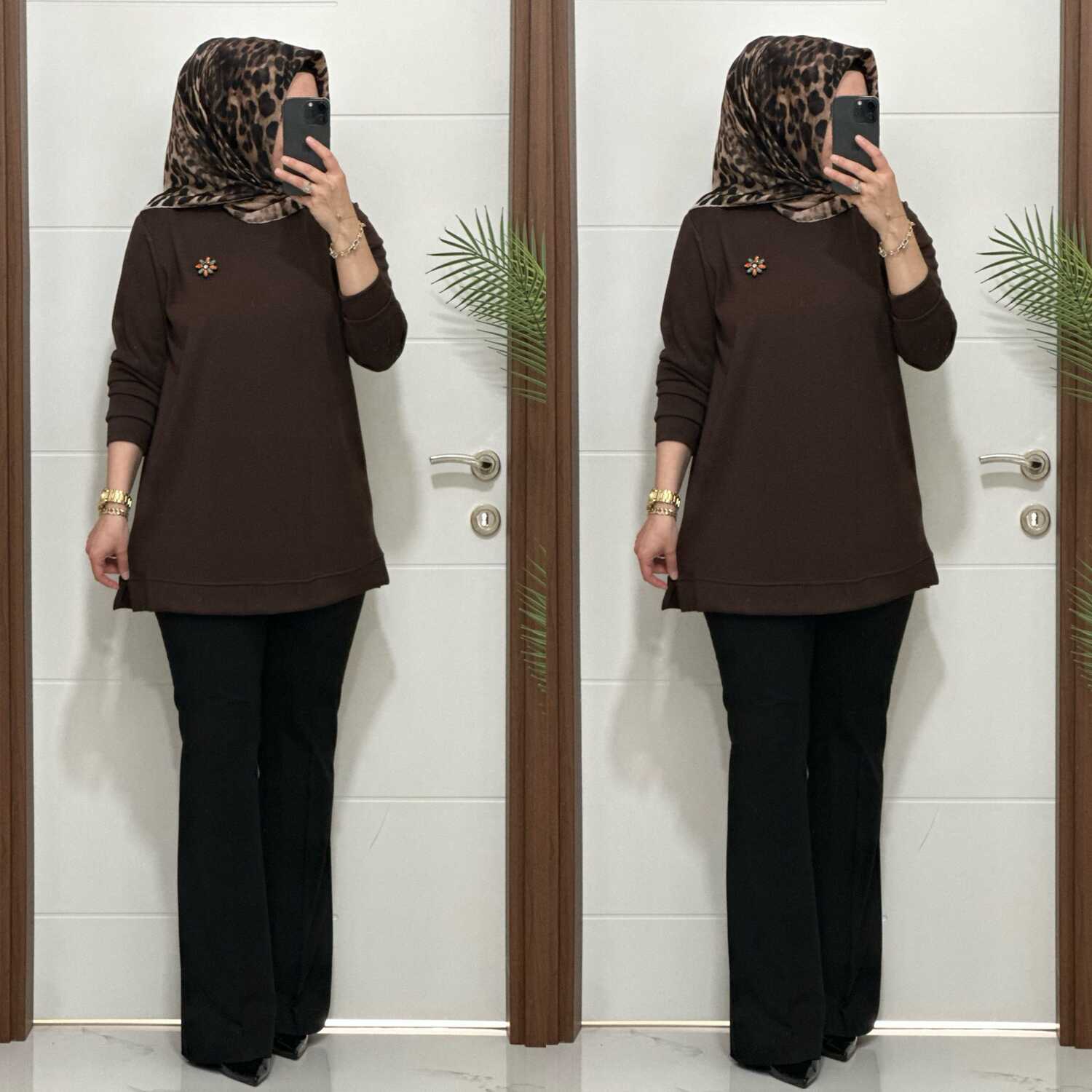 1550 K 656 KAHVE BROŞ HEDİYELİ BÜYÜK BEDEN TUNİK