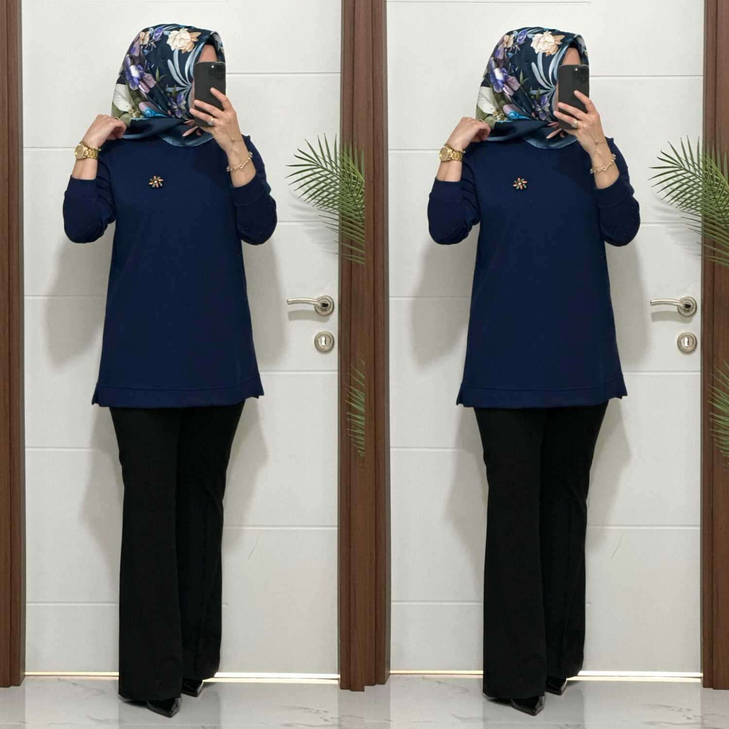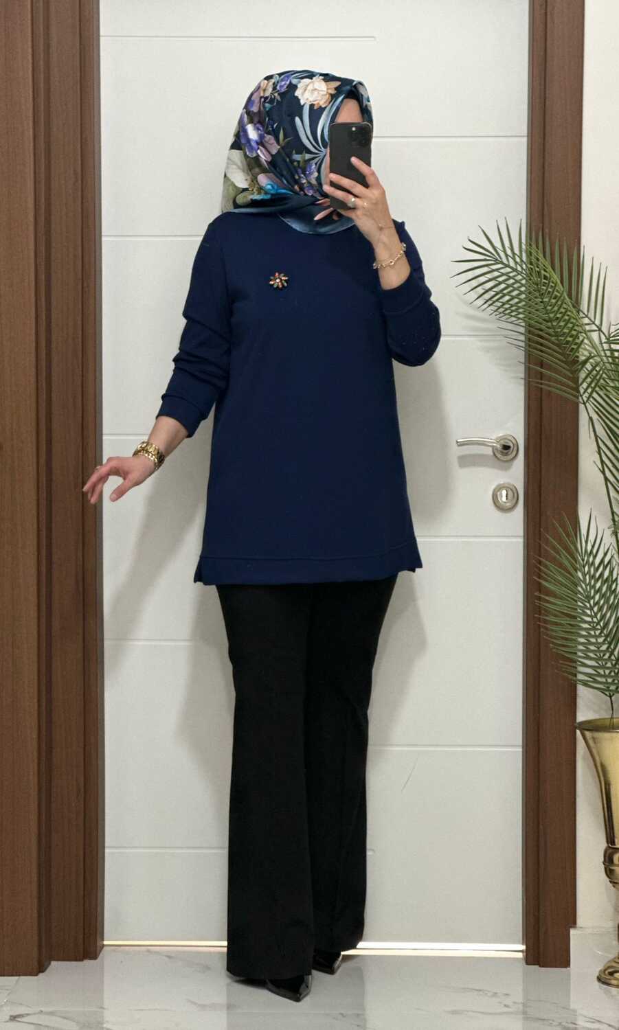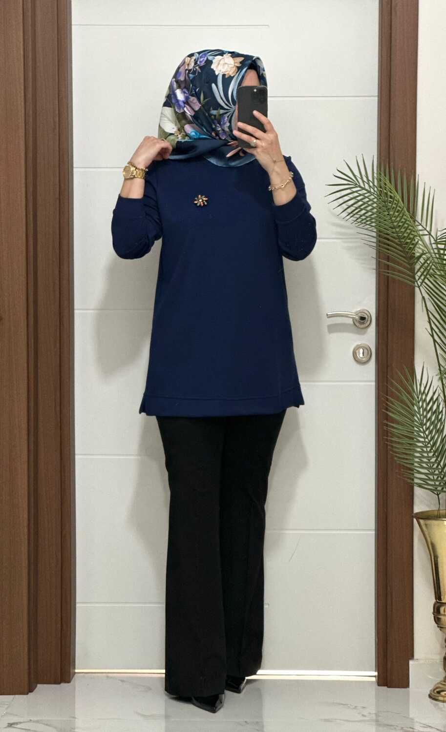 1550 K 656 LACİVERT BROŞ HEDİYELİ BÜYÜK BEDEN TUNİK