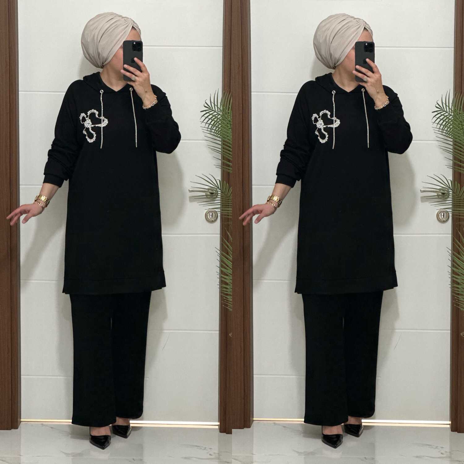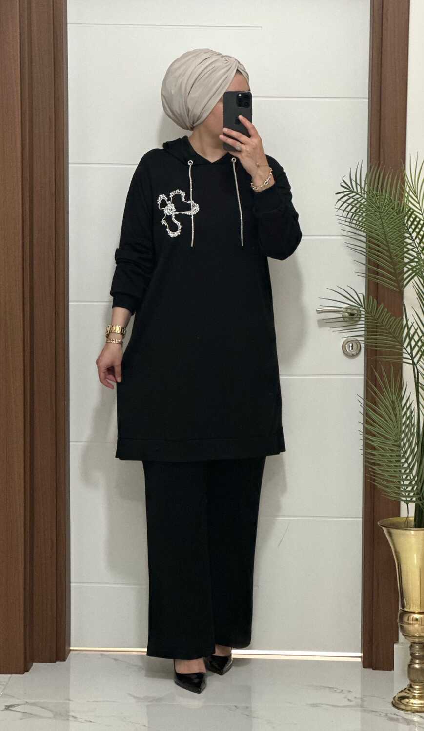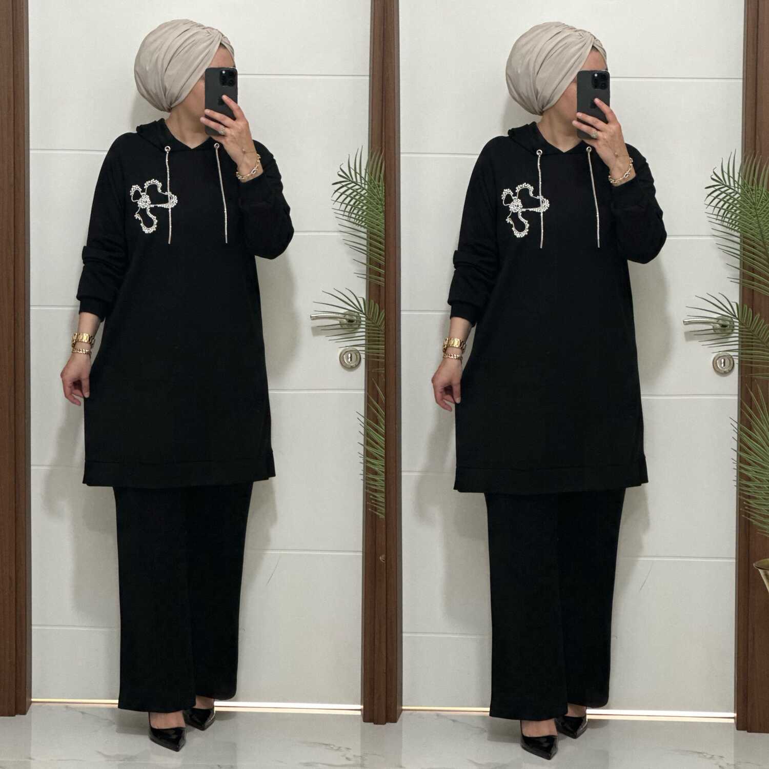 6666 K 150 SİYAH ÇİÇEK TAŞLI OYSHO TAKIM