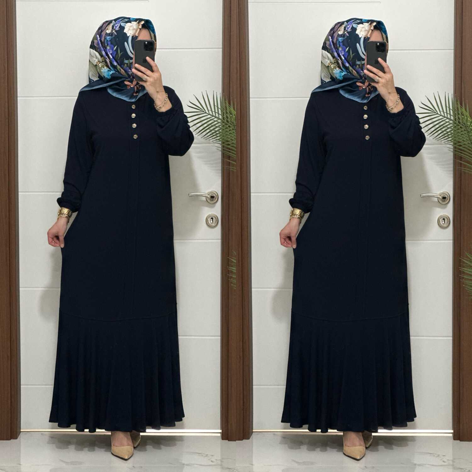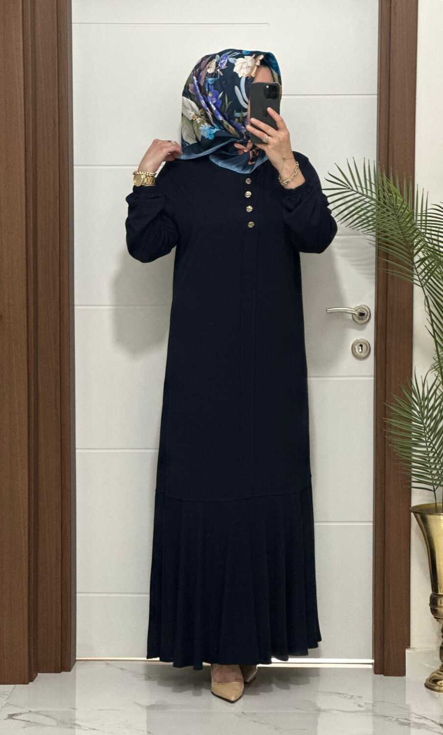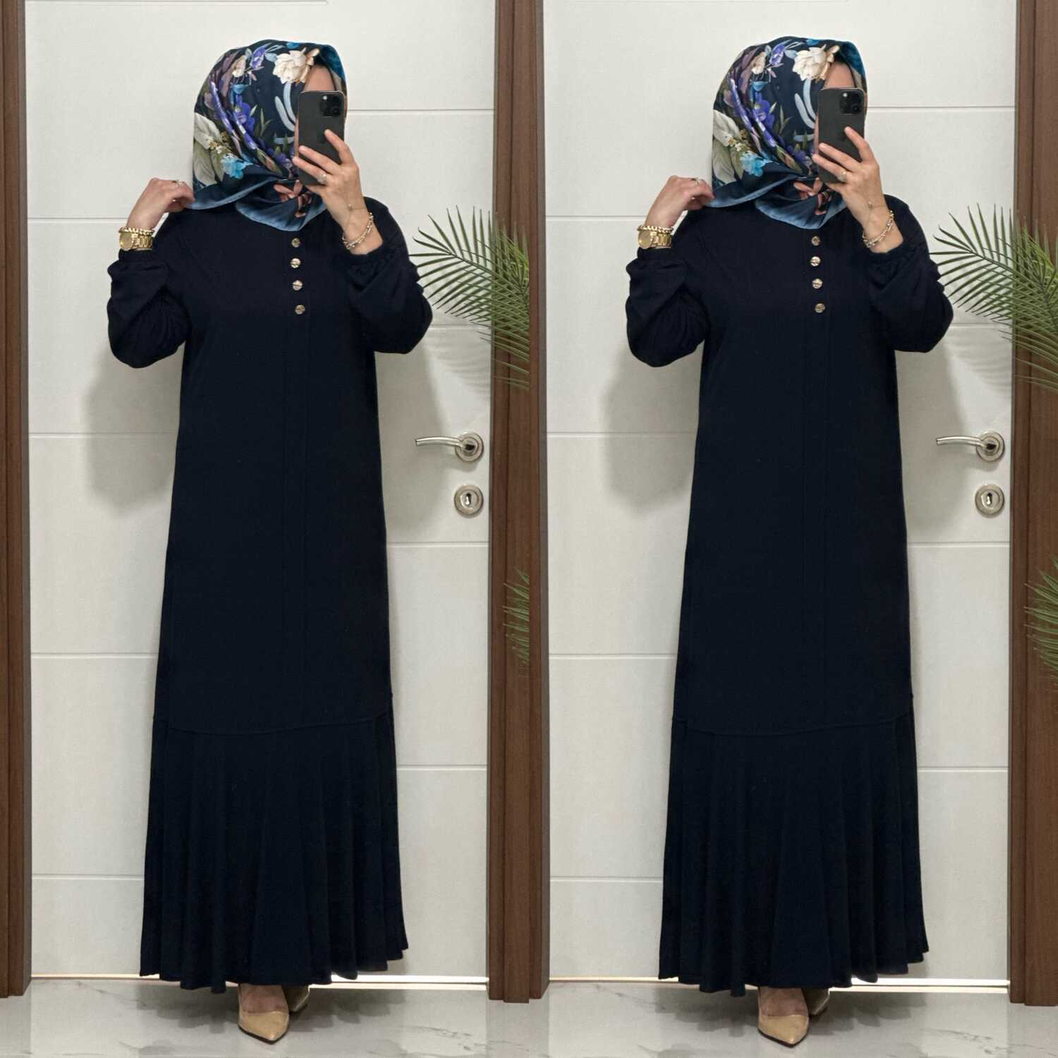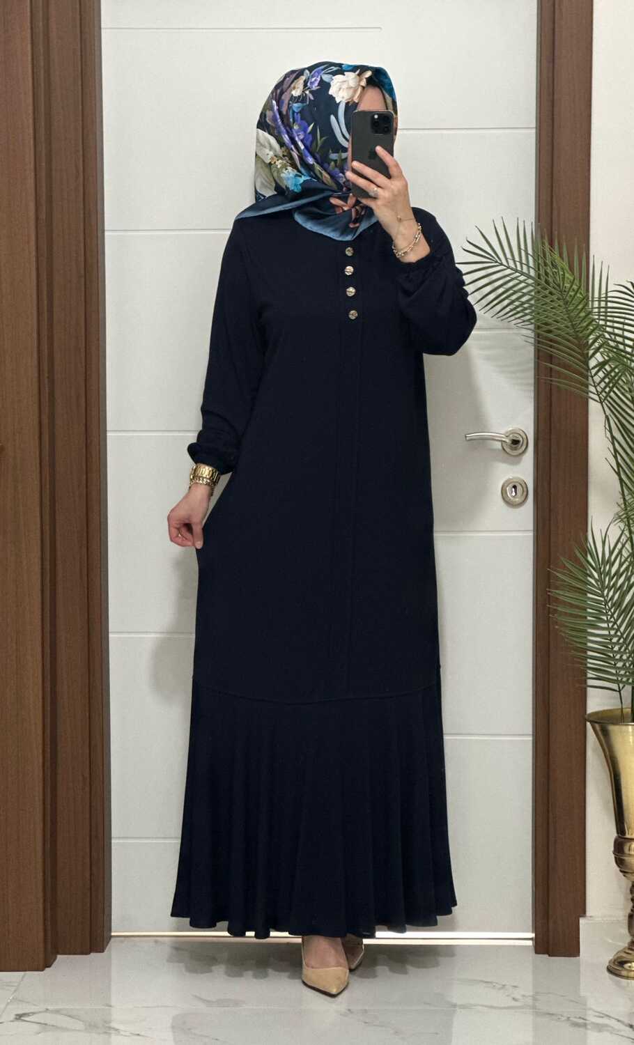 25307 K 125 LACİVERT EDİZ VOLANLI ELBİSE