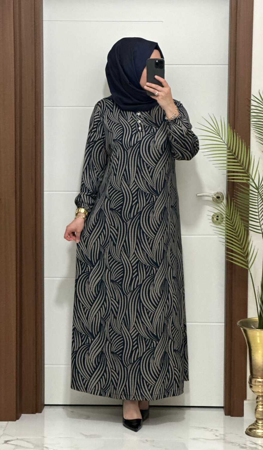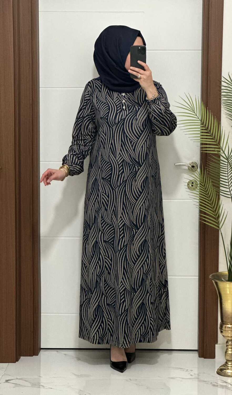 26427 K 90 LACİVERT-VİZON ASLI ELBİSE