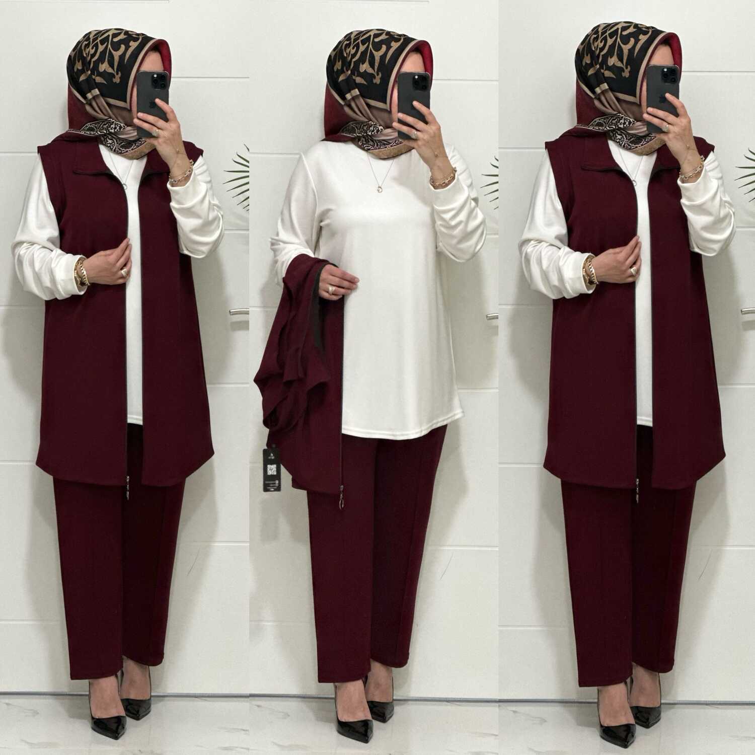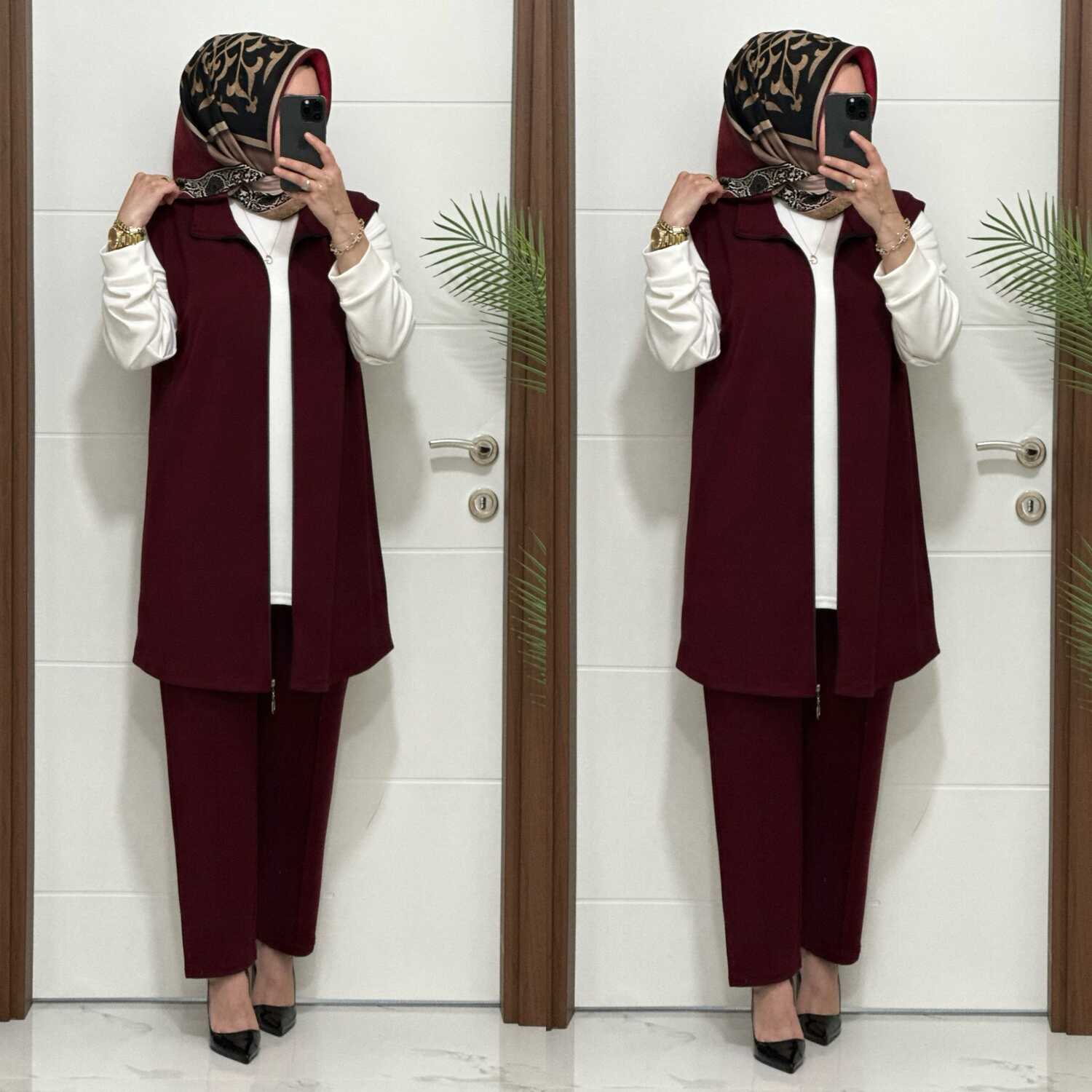 3030 K BORDO GAMZE ÜÇLÜ TAKIM