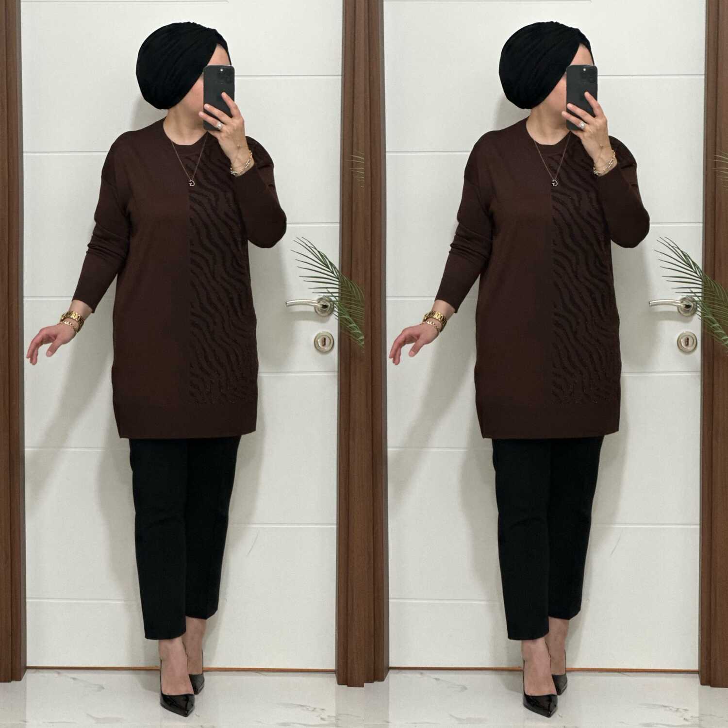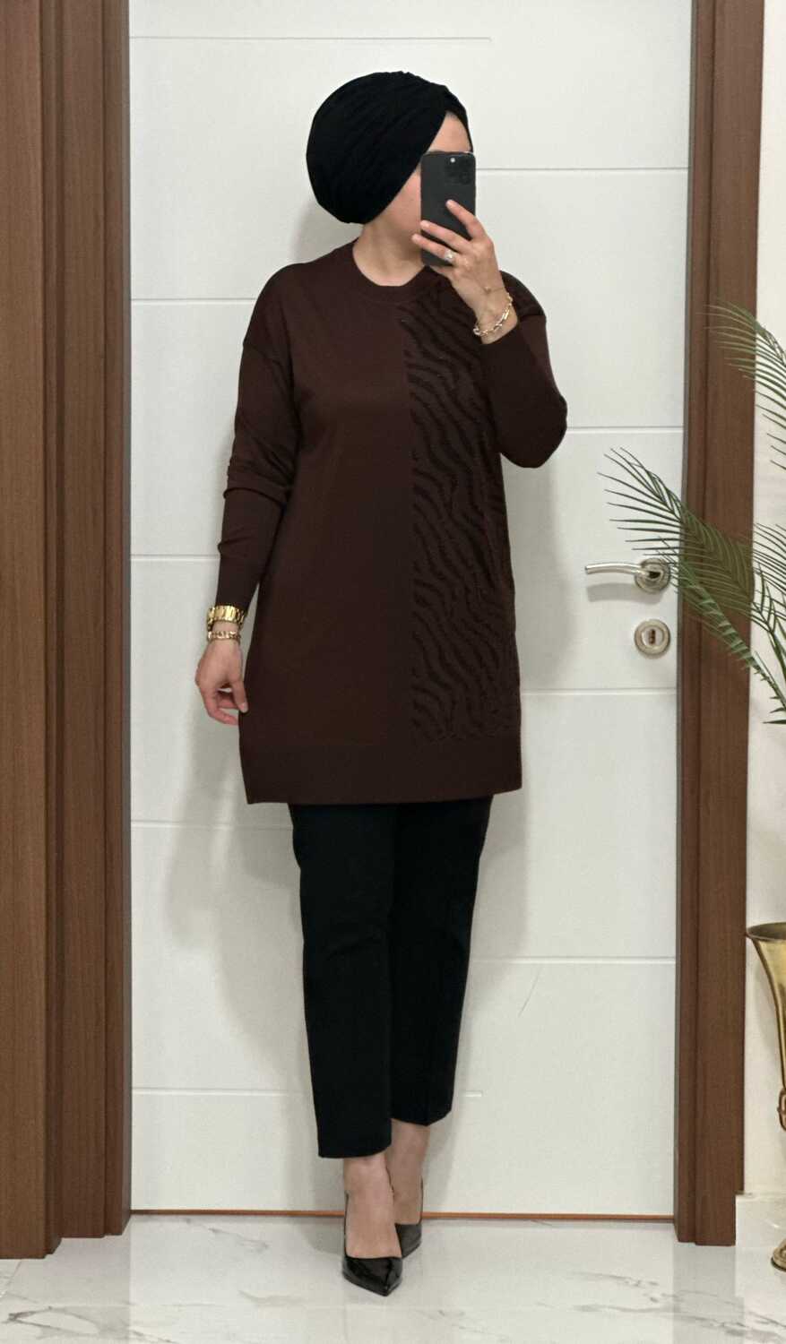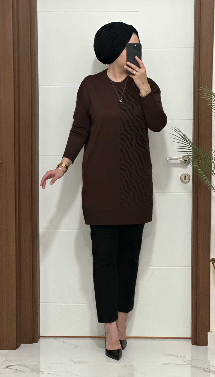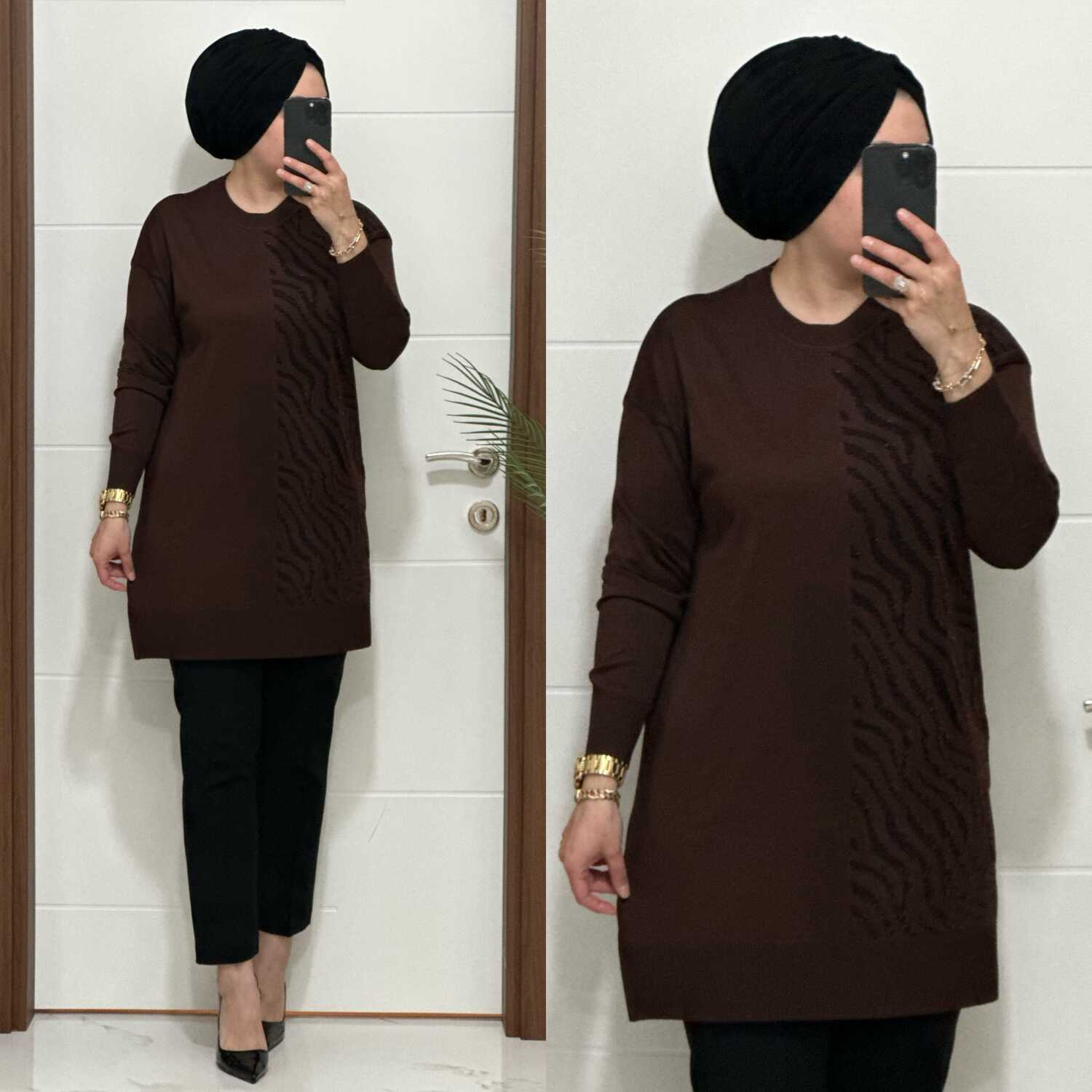5100 K 100 KAHVE ZEBRA DESEN SOĞUK İPLİK TUNİK