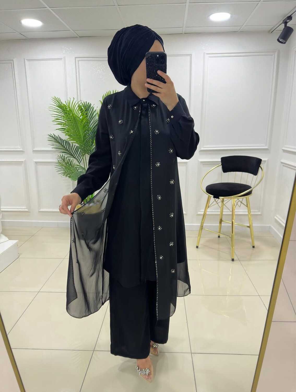 8989 K 90 SİYAH ŞİFON TAŞLI TAKIM