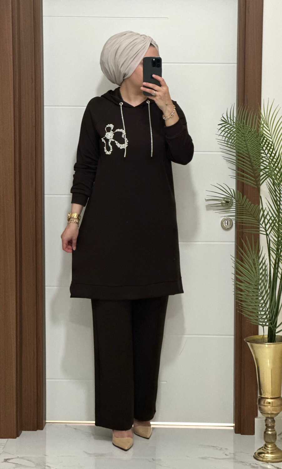 6666 K 150 KAHVERENK ÇİÇEK TAŞLI OYSHO TAKIM