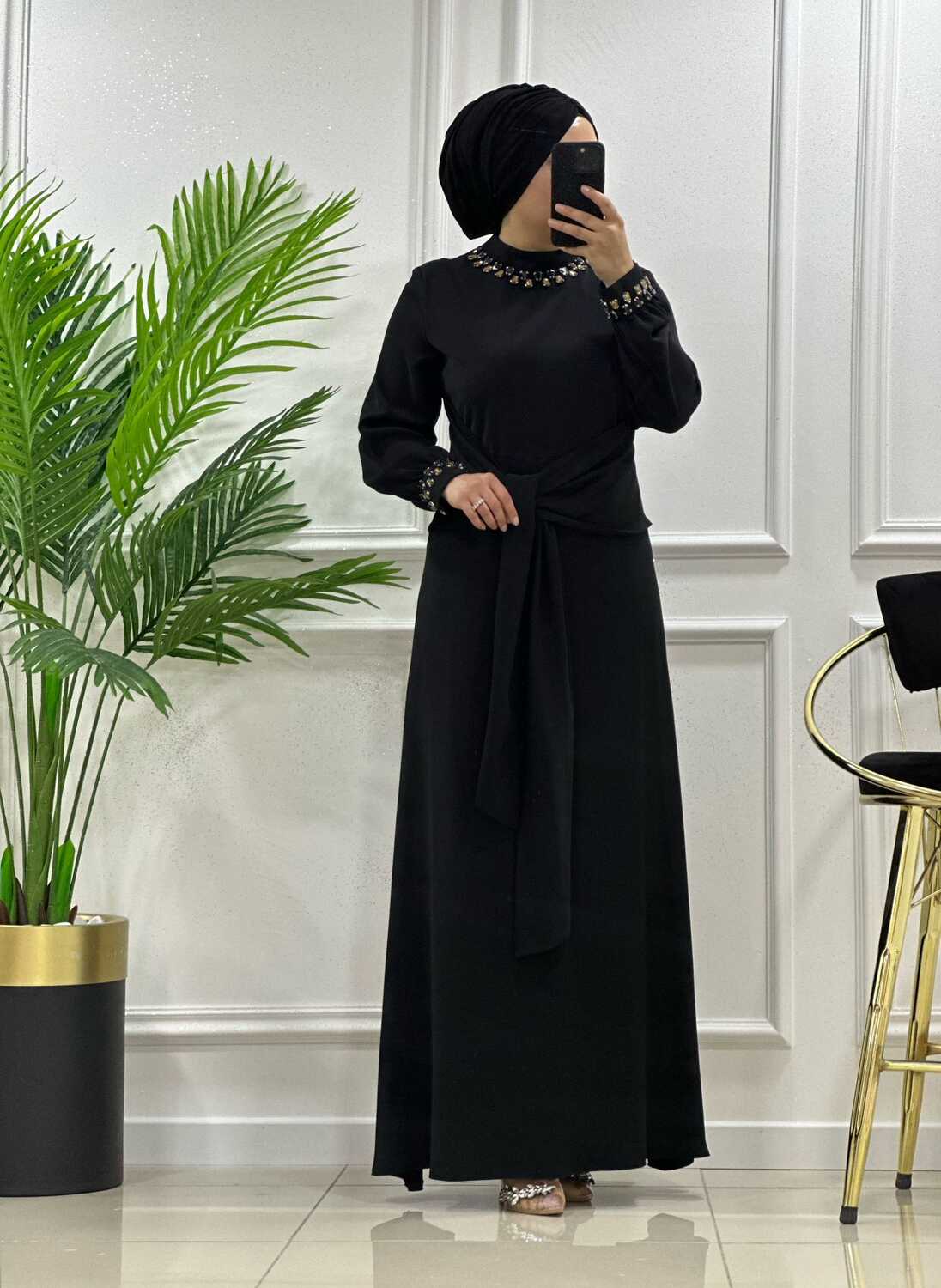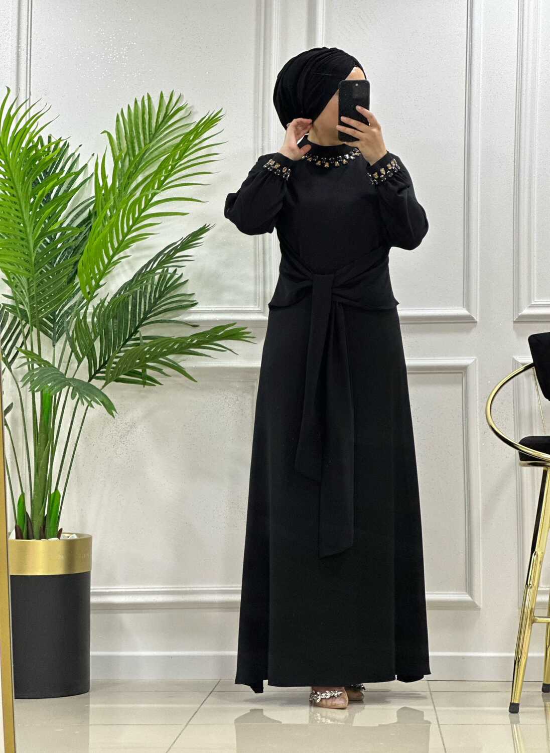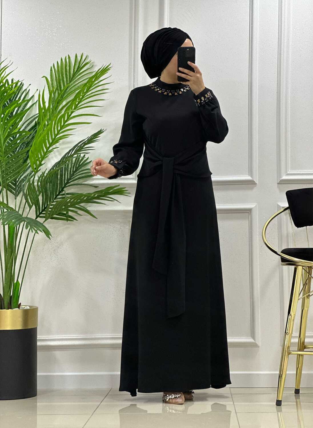 2776 K 150 SİYAH YENİ SEZON ÇINAR ÖZKAN BEL BAĞLAMALI ELBİSE