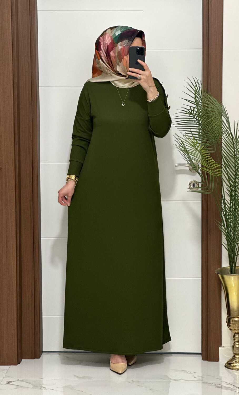 F11 K 80 HAKİ OMUZ DÜĞMELİ LEYLA ELBİSE