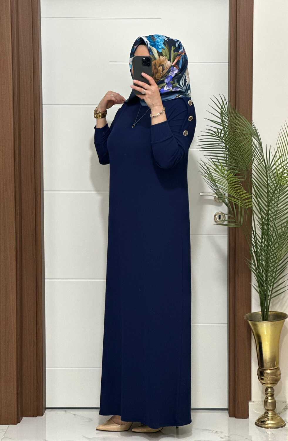 F11 K 80 LACİVERT OMUZ DÜĞMELİ LEYLA ELBİSE