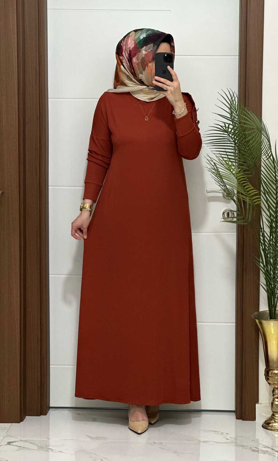 F11 K 80 KİREMİT OMUZ DÜĞMELİ LEYLA ELBİSE